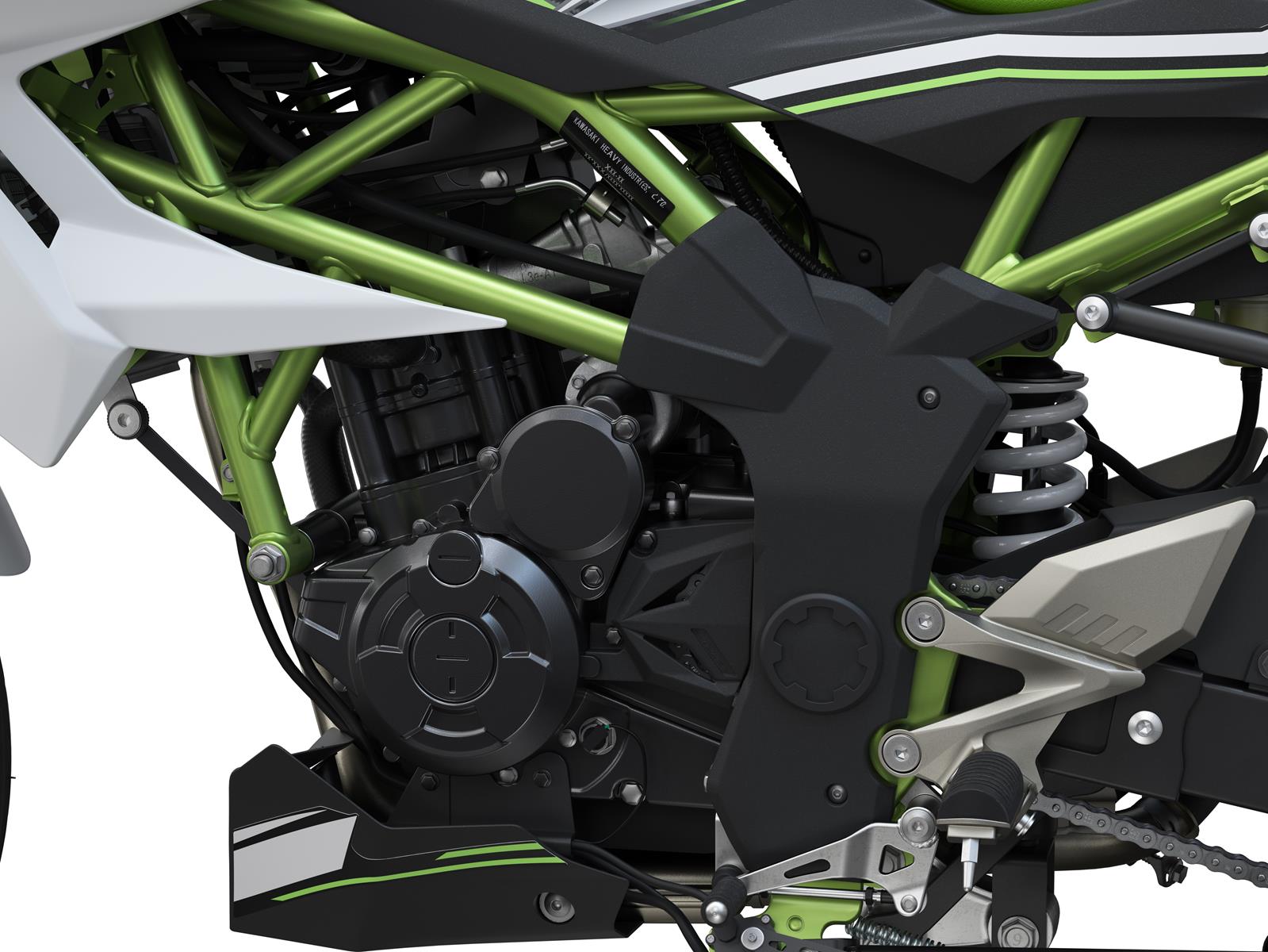 125 cm3 4-takt Single Een soepele vermogensafgifte draagt bij aan de vlotte prestaties van de 125 cm3-motor van de Z125. Net als een typische Kawasaki-motor levert de motor een goede "stoot" bij hoge toerentallen en blijft hij tot aan de toerenbegrenzer trekken. Betrouwbaarheid overgenomen van zijn robuuste 250cc-basismotor zorgt voor gemoedsrust. Zestraps transmissie Soepel schakelende zesversnellingsbak vormt een aanvulling op de sportieve straatprestaties en biedt een versnelling voor elke situatie. Elektrische starter en brandstofinjectie zorgen voor probleemloos starten met één druk op